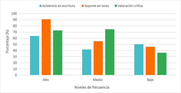 mostró asociaciones significativas entre la frecuencia de uso de IAG y las